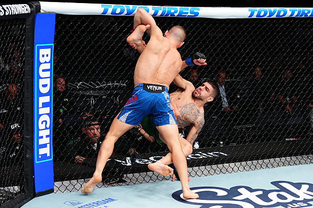With little more than a minute to go in the second, Mariscal fought his way back up. During the grappling exchange, it appeared as though Sabatini sustained another cut near his right eye. Undeterred, Sabatini scored and notched another big takedown, securing nearly three minutes of control time before the final round.