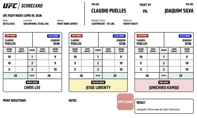 Official Result: Joaquim Silva def. Claudio Puelles via split decision (29-28, 28-29, 29-28).