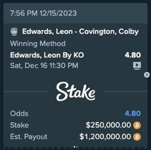 “Head shot please and thank you @leonedwardsmma,” Drake posted on his official Instagram account, accompanied by a screenshot of his betting slip.
