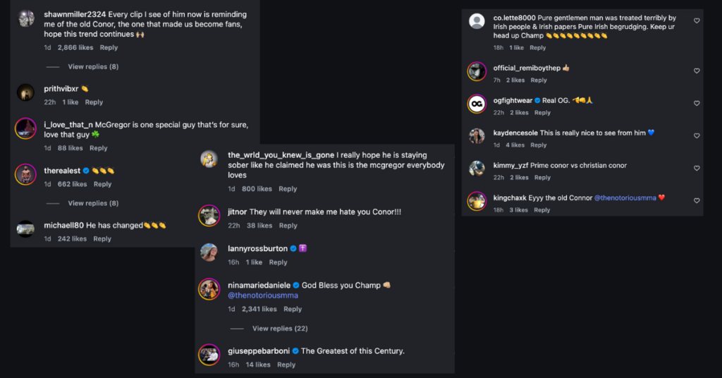 “Every clip I see of him now is reminding me of the old Conor, the one that made us become fans, hope this trend continues 🙌🏼”