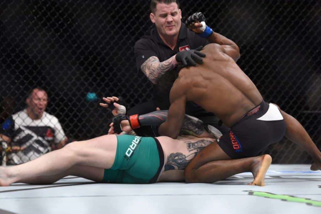 Rountree blasted through Craig’s defense on the feet and simply powered through him the majority of the first round. With four seconds left on the clock, Rountree blasted him with a short punch that just leveled the Scotsman.