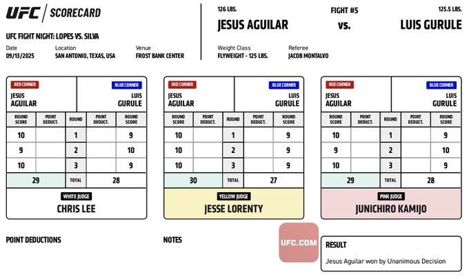 Official Result: Jesus Aguilar def. Luis Gurule via unanimous decision (30-27, 29-28, 29-28).
