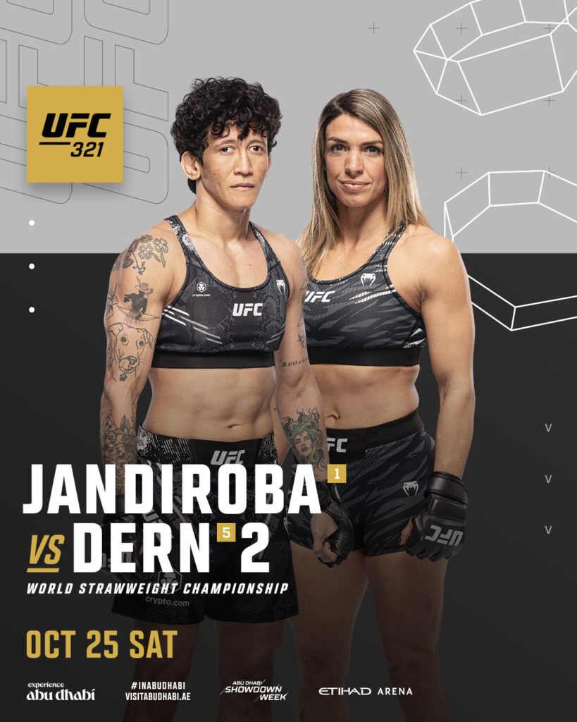 After seven years and 15 fights inside the Octagon, Dern will look to cash in on her first title opportunity when she meets Virna Jandiroba at UFC 321 for the vacant strawweight world championship.