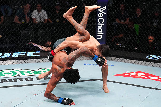 Lighting up Oliveira with strikes, the Brazilian scrambled to free himself, but ultimately gave up his back, allowing Bautista to cinch in a lightning-fast rear-naked choke and forcing Oliveira to tap out almost immediately.