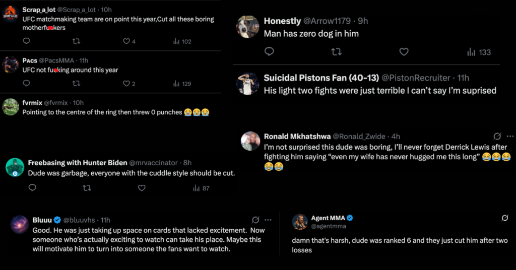 “I’m not surprised. This dude was boring, I’ll never forget Derrick Lewis after fighting him saying “even my wife has never hugged me this long” 😂😂😂😂😂”