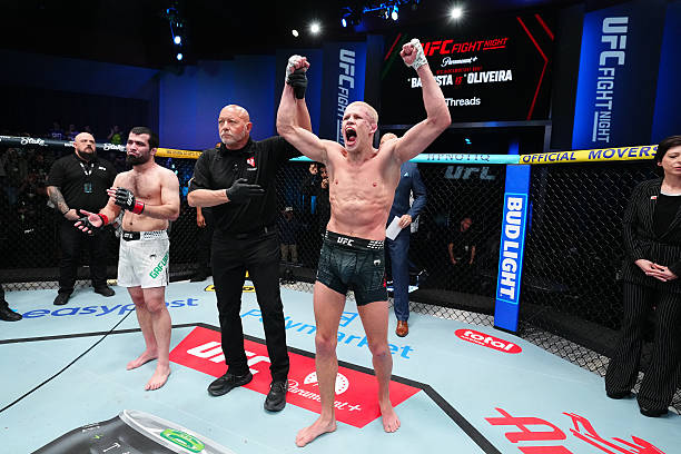 Despite having a clear advantage on the feet, Gafurov opted to shoot in for a late takedown. That gave Wikłacz the opportunity he needed to reverse the position and secure a mounted guillotine. Struggling to hold on through the final horn, Gafurov appeared to tap out with both his left and right hands with only one tick left on the clock.