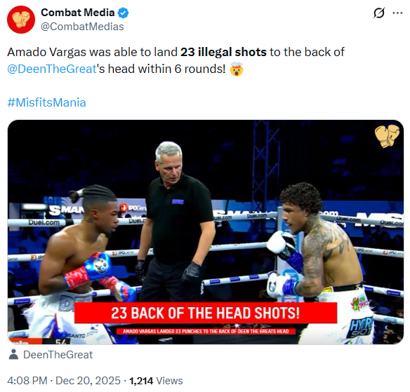 Despite taking the unanimous decision, Vargas’ victory came with a hint of controversy after he was practically allowed to deliver more than 20 illegal blows to the back of Deen’s head before being deducted a single point.