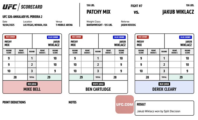 Octagon newcomer Jakub Wikłacz stunned Patchy Mix at UFC 320, earning a split decision victory over the former Bellator star.