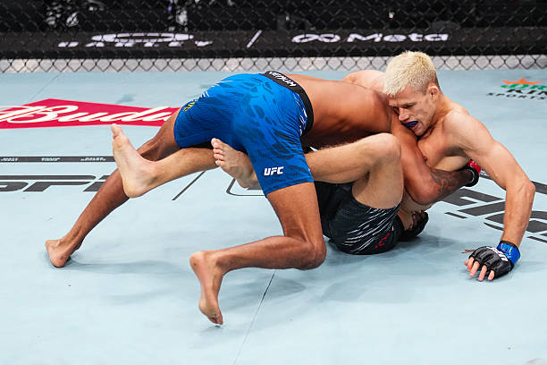 After eating a stiff right hand from Wikłacz in the first, Mix looked to get his ground game going, scoring a solid takedown against the Polish newcomer. However, Mix’s success didn’t last long as Wikłacz quickly reversed position, mounting Mix with plenty of time left on the clock.