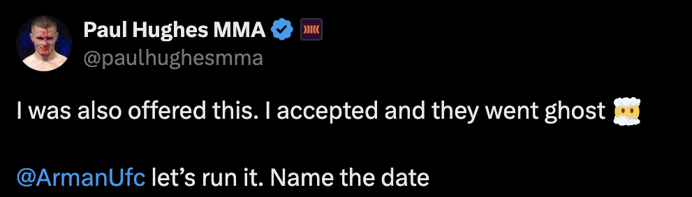 “I was also offered this [Grappling bout against Arman Tsarukyan in December]. I accepted, and they went ghost 😶🌫️ @ArmanUfc let’s run it. Name the date.”