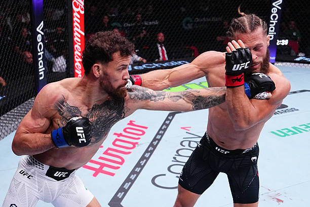 Fiziev immediately looked to put pressure on Ruffy, pressing his opponent against the cage and landing a series of stiff calf kicks. Much of the first round belonged to Fiziev, though Ruffy started to find his flow state in the closing minute of the stanza.