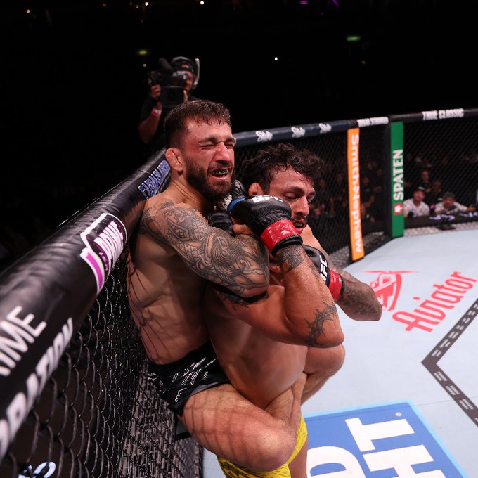 Before long, he did exactly that, locking in a standing RNC that forced the Brazilian to tap out.