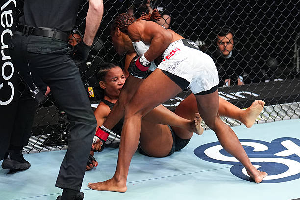 Official Result: Shanelle Dyer def. Ravena Oliveira via TKO (knees to ground and pound) at 1:17 of Round 2.