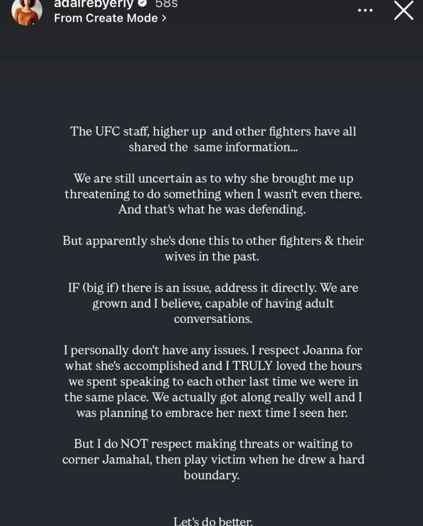 Meanwhile, Joanna Jedrzejczyk also uploaded a statement on Instagram after the altercation with Jamahal Hill.