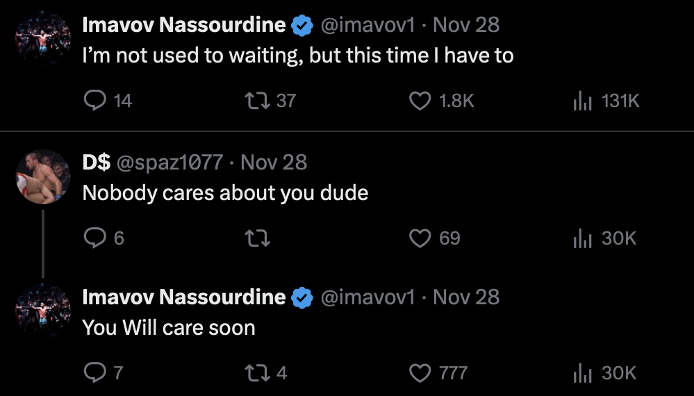 Check out Nassourdine Imavov’s comments below: