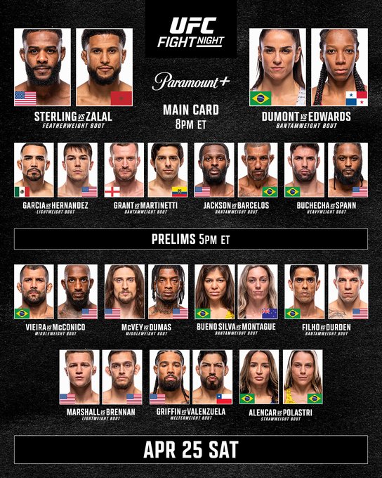 In the main event, former bantamweight king Aljamain Sterling looks to continue his climb up the featherweight ranks and secure his first shot at the 145-pound crown. But to do it, he’ll have to go through streaking standout Youssef Zalal. ‘The Moroccan Devil’ has not lost a fight since 2022 — a streak that includes five straight victories under the UFC banner.